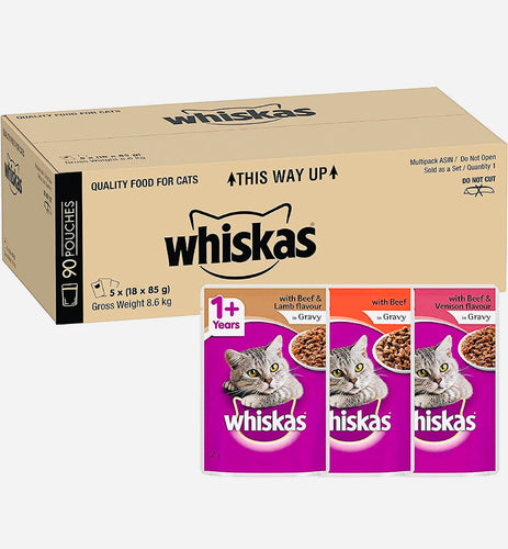 Whiskas beef selection in gravy wet cat food 80gm * 90Pack